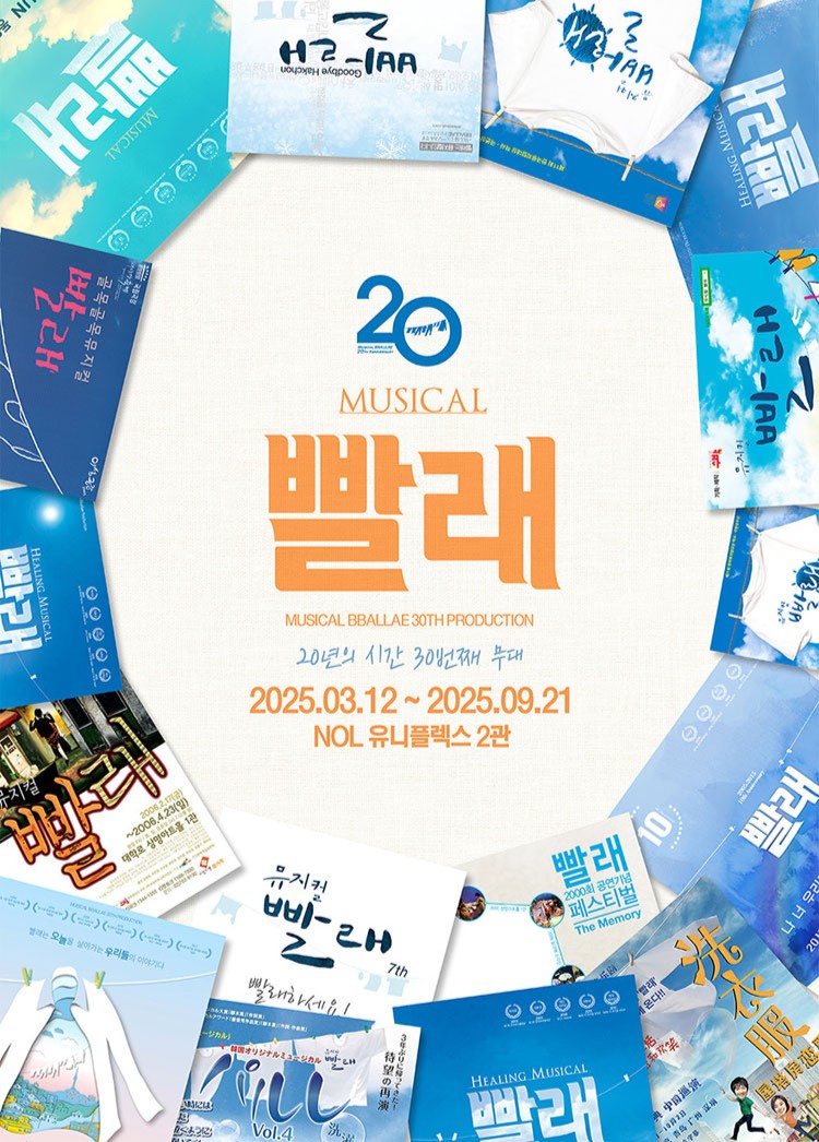 뮤지컬 빨래는 뮤지컬을 모르는 사람도 한번쯤은 들어봤을만한 2005년 초연 이후 20년간 130만 관객과 만나며 6,000회 이상의 공연을 기록한 대한민국 대표 창작 뮤지컬입니다.