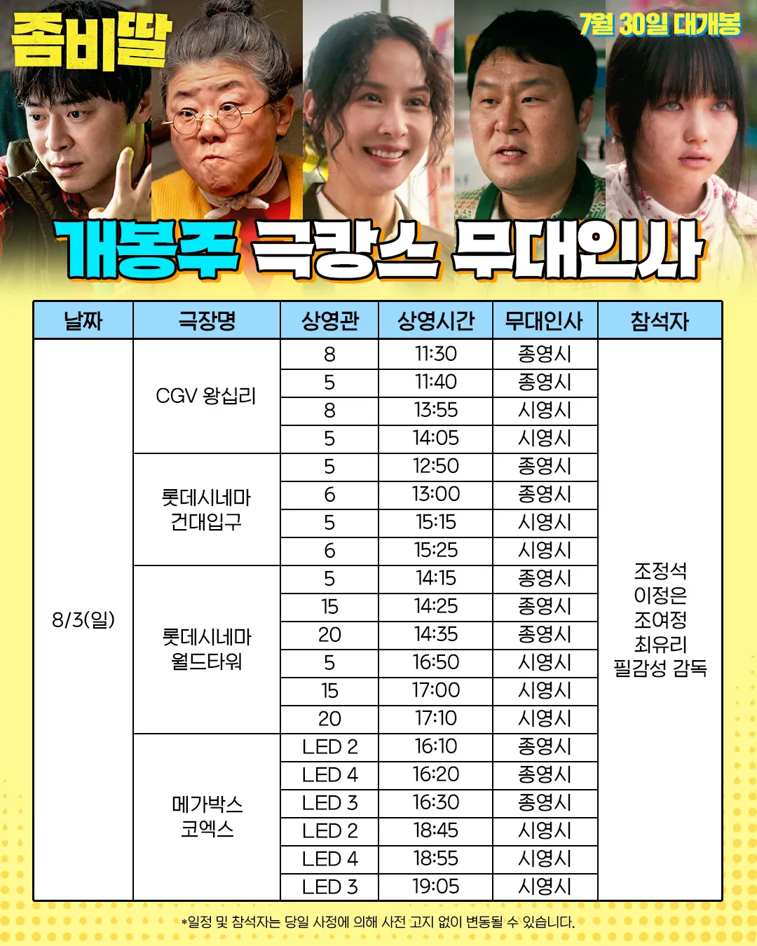 좀비딸 무대인사 일정 안내