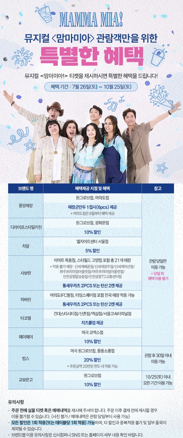 뮤지컬 맘마미아 관람객에게 여러 혜택을 제공하고 있습니다.